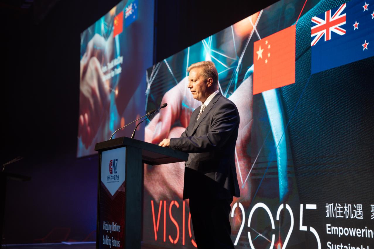12月6日,王小龙大使与驻奥克兰总领事陈世杰、驻克赖斯特彻奇总领事何颖共同出席“愿景2025”论坛活动,王大使发表主旨演讲。新西兰前总理约翰·基、工党党魁希普金斯、贸易部长麦克莱、新西兰中国商会会长祁军以及中新政商界代表400余人出席活动。