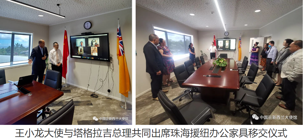 在纽埃期间,王大使还拜会了纽埃财政兼基础设施部长塔图伊、社会服务部长汤阿图勒、代理自然资源部长马卡尼,以及纽埃政府秘书长塔拉吉等主要政府官员,就双方共同庆祝建交15周年以及在有关领域的务实合作交换了意见。王大使并同塔格拉吉总理共同出席了珠海援助纽埃办公家具的移交仪式。王大使一行还出席了塔格拉吉总理为王大使专门举办的传统晚宴。