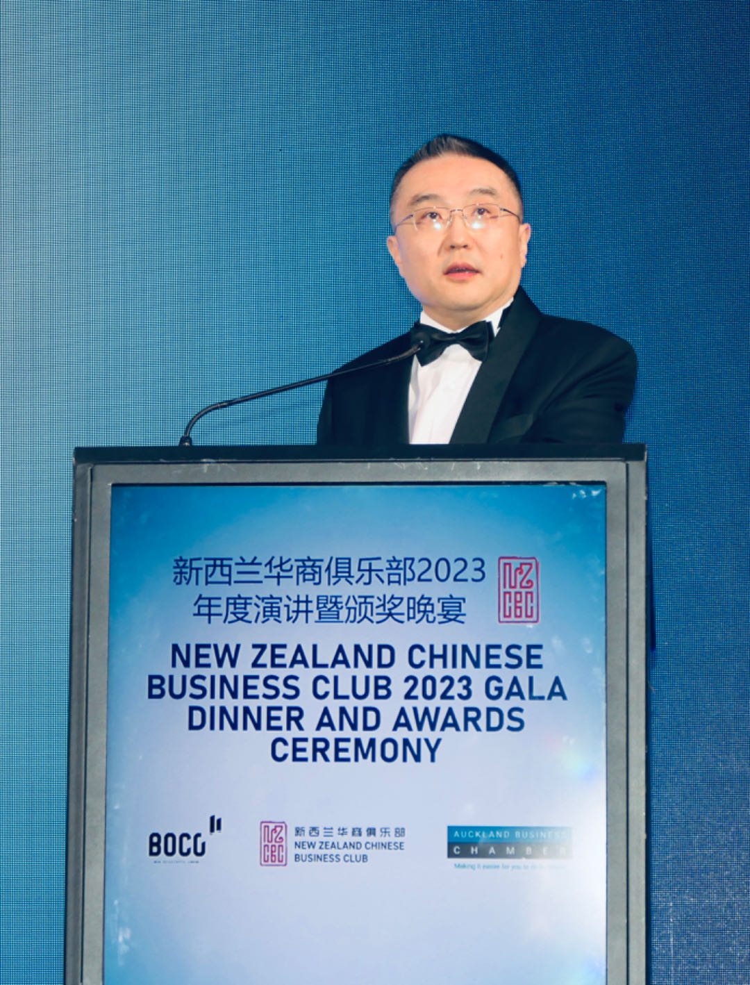 王小龙大使出席新西兰华商俱乐部2023年度演讲活动